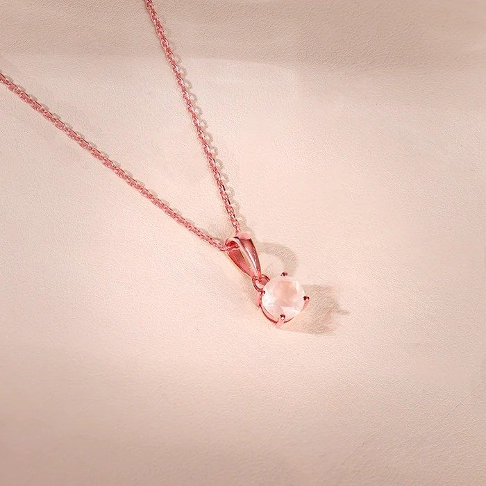 Each pendant is meticulously crafted to ensure precision and durability, making it not only visually stunning but also built to last. The rose gold setting beautifully wraps around the semi-precious rose quartz gemstone, highlighting its subtle pink hue and natural sheen. The lightweight yet durable materials ensure maximum comfort, allowing you to wear it all day without compromise.